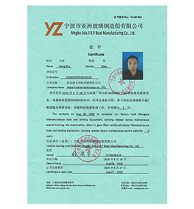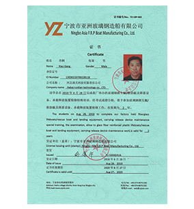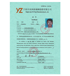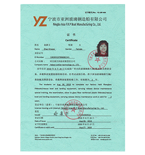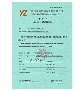 - 寧波市亞洲玻璃鋼造船有限公司救生艇授權(quán)證書