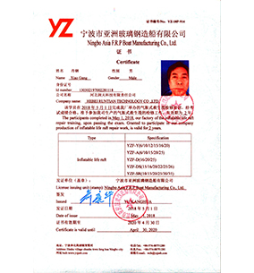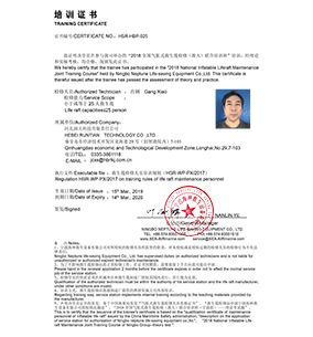 - 江蘇海寧125人以下救生筏A筏站人員培訓(xùn)證書(shū)